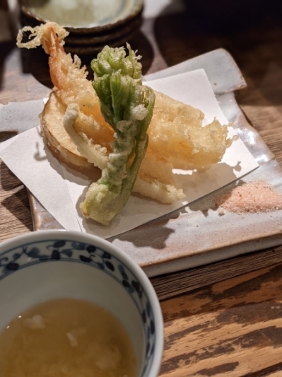 お酒も美味しいもんだから、おまかせ天ぷら3ピース追加。