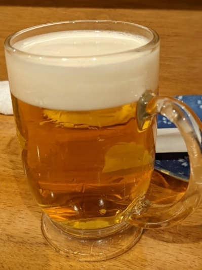 カウンター席端っこGET!最近既に暑いので生ビールの日とます。