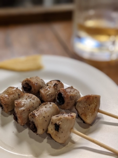 味も歯応えも文句なしの焼き加減の串を塩でサックリいただきます。