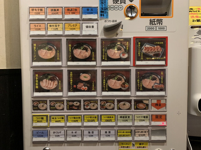 2022.6.19夜 博多ラーメン…810円、高菜…100円、明太子ご飯…180円