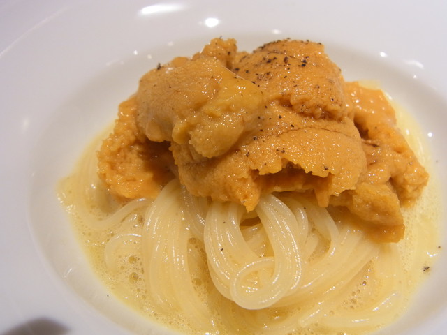 まず登場したのがこちらの雲丹のパスタ。