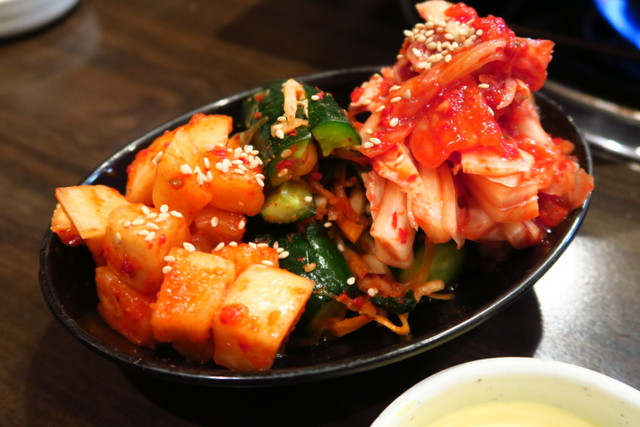 お肉が焼きあがると、レタスに包んで、キムチなどと一緒に巻いていただきます。