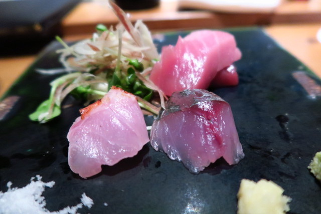 金目鯛、鯵、赤身の中トロの3種類です。