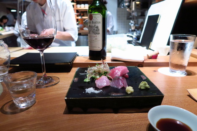 お刺身に赤ワインというのもたまにはイイですね〜。