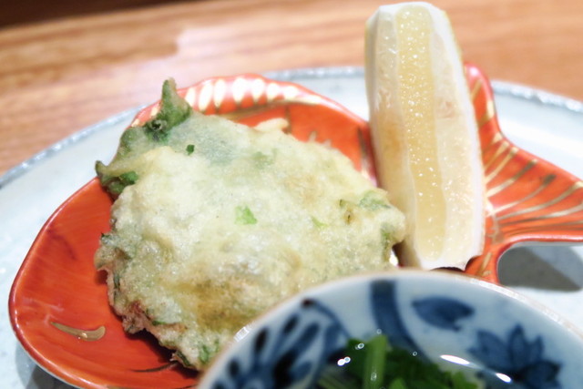 鯵と大葉の天麩羅はきゅっとレモンを絞って。