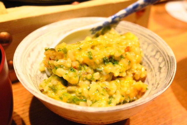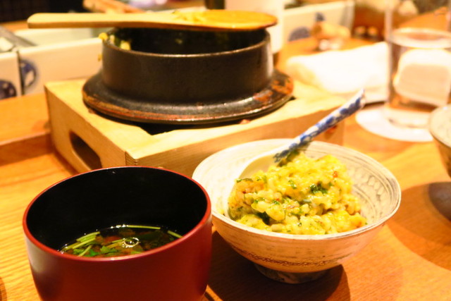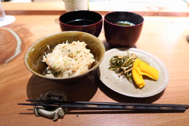 最後の〆はお店の名物、海老”び”の炊き込みご飯。