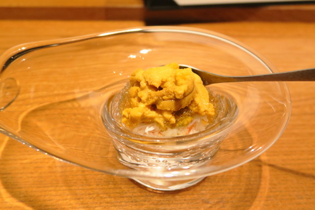 まず最初は、「毛ガニと生ウニのさっぱりジュレ」からスタートです。