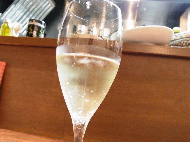 =========================2013年11月http://ebisu-gourmet.blog.jp/archives/51873154.html=========================銀座に8月にOPENしたばかりのイタリアン、「TRATTORIAGANZOガンゾ」に行ってきました〜。「ヴィノリオ(VINORIO)」でシェフをされていた高田さんが独立されてOPENしたとのこと。大好きなお店なので期待です!場所は銀座からちょっと歩いたビルの2階。すごく小さなビルなので看板を見つけてくださいね。このビル、エレベーターが2階には止まらないので要注意。階段を使ってください。店内に入ってみるとすごくかわいらしい店内。トスカーナの田舎のレストランをイメージした内装なんだそうです。グリーンのブラインドとそこで光るランプ、温かい木のぬくもりのあるカウンター、ゆらゆらゆれる椅子、なんだかとっても居心地いいです。カウンター6席と4名テーブルと2名テーブルがありました。カウンターではシェフとおしゃべりしながら色々なお料理がいただけます。まずは泡で乾杯♪これが至福のとき。お料理は基本はコース。アラカルトの場合もコースのメニューの中からチョイスするスタイルです。コースのコスパがすごくいいといううわさを聞いていたので、もちろんコースを頂くことに。前菜とパスタ、お肉料理は数種類の中から好きなものを選べます。まず最初はこちらのフルーティな白ワインを頂きました。▼「インゲン豆の冷たいポタージュ」濃厚でクリーミーなポタージュ。まだ残暑の残るこの時期にぴったりのさわやかさ。自家製パンと一緒に。前菜はひとり1種類選べますよ。この日は2種類を2人でシェアしました。▼「フォアグラの一週間熟成テリーヌ」ブラックペッパーがぴりっときいています。▼「トリッパのトマト煮のコロッケ、ホースラディッシュ添えと小さなサラダ」このコロッケ、中身にはたっぷりのトリッパが入っているんです。なんだか斬新な一品。続いてパスタです。▼「キタッラのマツタケと海水ウニのソース」自家製のもちもちパスタはこんな機会を使って作るそうです!マツタケとウニ、山と海の味覚を贅沢に頂きます。パスタともよく絡んで美味しい。。▼「鮮魚のソテー、パースニップと長芋のムース、黄色ズッキーニのソース」黄色いズッキーニのソースが美しい。続いていただいた赤はこちら。お肉の前に口直しを頂きます。最後はお肉です。やっぱりハツ、食べないとね!▼「国産牛ハツのロースト、ケッパーと牛肉のエキスのソース」赤ワインとともに。このハツのボリューム!まずびっくり。そして、ナイフを入れるとレバーのように滑らかに切れるんです。これは衝撃でしたよ。ハツってもっと淡白かと思っていたらものすごく濃厚。じっくりローストするとこんな風になるんだ、と感激。絶品でした。最後はスイーツを。▼「大分県産カボスのシャーベットに自家製カボスチェッロをかけて」これはさっぱり!大人の味ですね。▼「トルタカプレーゼ」バターとチョコチップがたっぷり入ったタルトケーキです。このコース、お値段なんと5500円です。このボリュームでこのお値段、安いです。お料理はいい意味で裏切られるものがたくさん。シェフの高田さんも熱い料理人!という感じで、色々お話できて楽しかったです。この隠れ家、なかなか人には教えたくないですが、デートで連れて行ってもらったらだいぶポイント上がると思います。ぜひチェキしてみてください。Facebookのメッセージでも予約してくれましたよwまたきます。ごちそうさまでした!