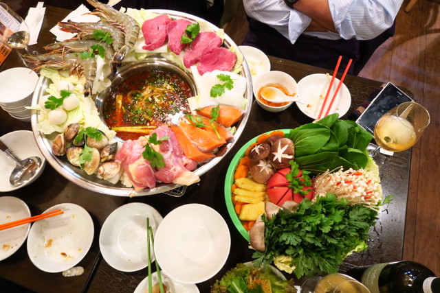 レモングラス鍋もスープの味を少しずつ変えながら、野菜も魚介もたっぷり楽しめて、