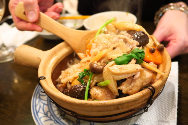 小さな土鍋で炊いたごはんは、鶏肉やにんじん、椎茸など具がたっぷり!