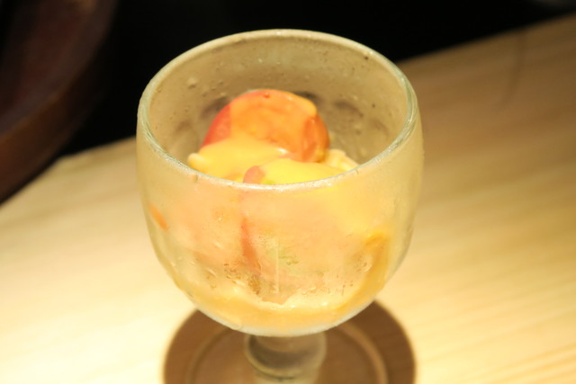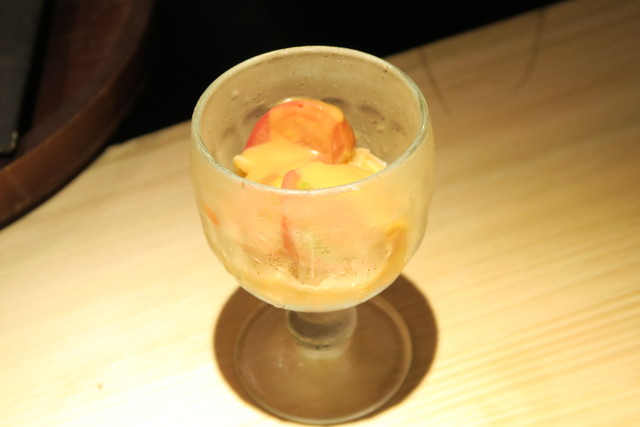 可愛らしいグラスの器で頂いたのは、京都産トマトのカッペリーニ。