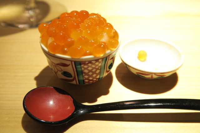 淡路産の新烏賊に、岩瀬産の筋子を合わせていただきます。