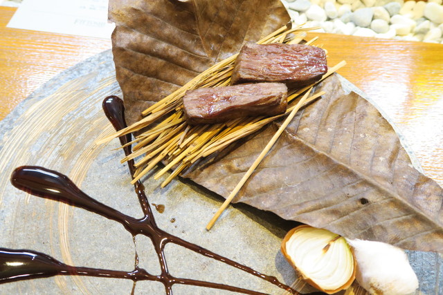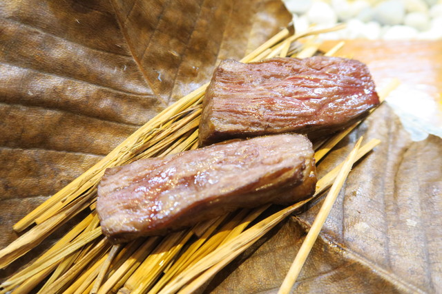 赤ワインに合わせるお肉料理は、なんと藁焼き!