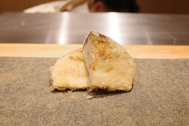 ねっとりとした柔らかいくちどけで、サクサクの衣との食感のマリアージュが楽しいです。