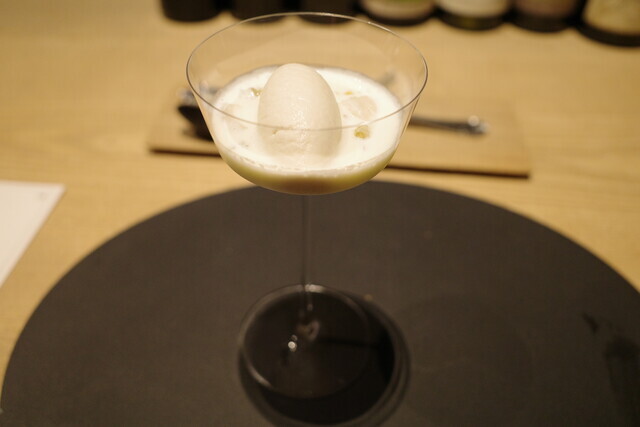 続く「桃」は、なんと鱧と合わせた冷製スープ。