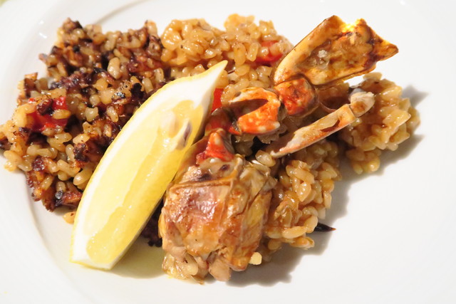 パエリア鍋のふちと中央でお米の食感が全く違う、驚いたパエリア。
