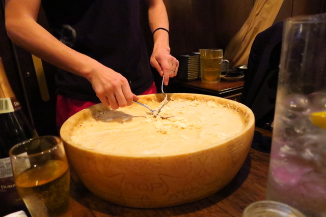 店員さんがおもむろにチーズを削りだします。