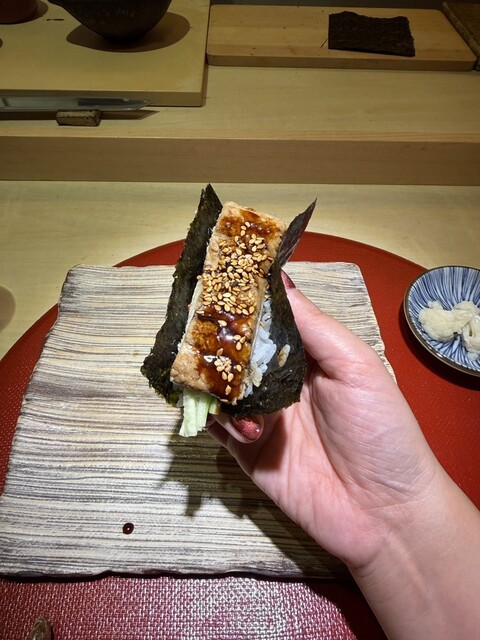 お寿司は珍しい?牡蠣のお寿司も牡蠣の旨みしっかりで美味しかった!最後のおわんの蟹となめこの汁物も最高でした♡