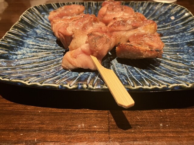 今日は、先付けが野菜のヨーグルト和え、霜降りもも肉のタタキ、上肝のお造りに始まり、焼き野菜のセット、焼き鳥は上肝、軟骨、もも肉。食事はコラーゲンスープをいただきました。