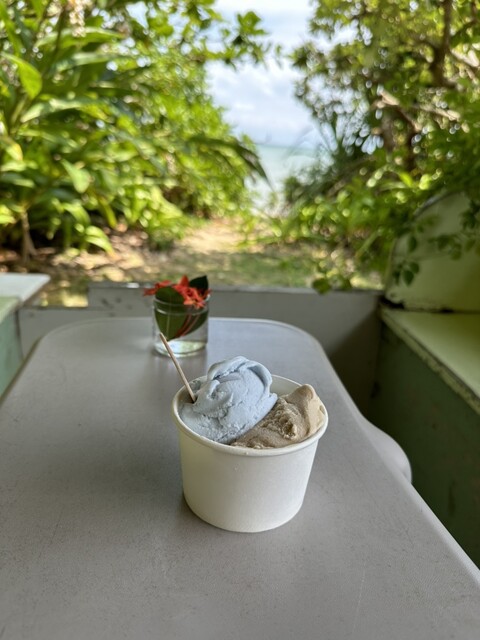 観光の際に何気なく立ち寄ったお店です。屋外にあるので日差しもきつくて暑かったのですが、お花の飾り方とかアイスの味も良かったし、お姉さんもあっさりしていて、優しい方できれいな青い海を見ながらものすごく戦...