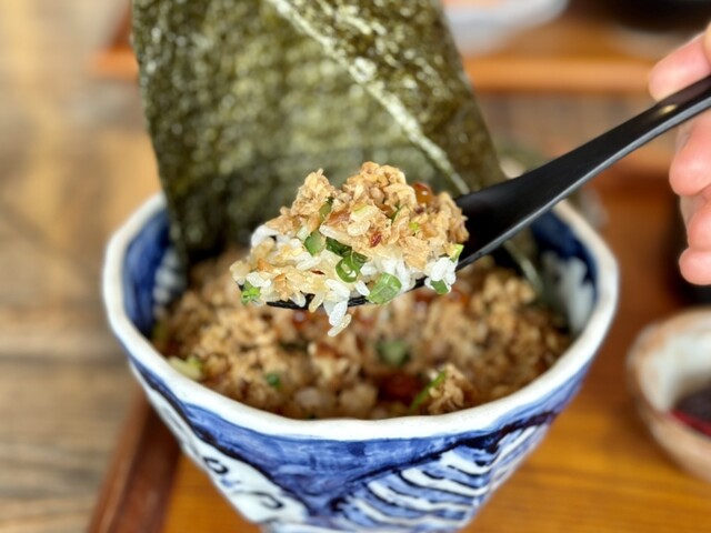 自家製の魚の燻製のほぐし身に焦がしバター醤油をかけた絶品丼
