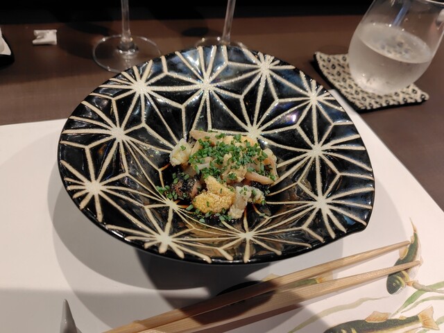 オコゼの刺身!(真子と皮つき自家製ポン酢で)