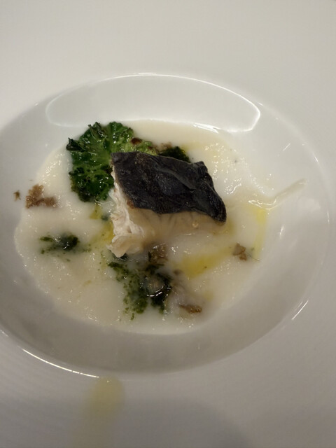 ●魚:鰆のグリル、大根と若芽のソース、蕗の薹とプチベール