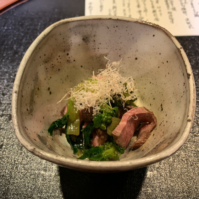 肉肴は、岩手南部牛カイノミの木の芽焼き