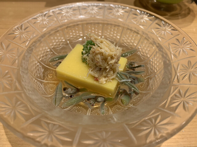 毛蟹に土佐酢ゼリーがけと言う一品。