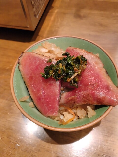大トロの塊を焼いて頂き丼の上に乗せて頂くだけで気分は最高で上がります、