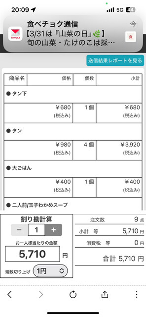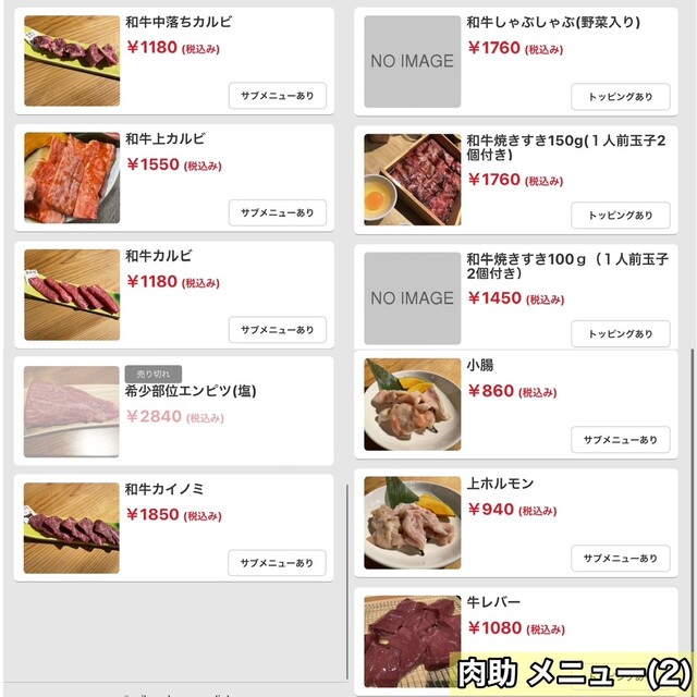 「タン下」は680→880円に値上がり。
