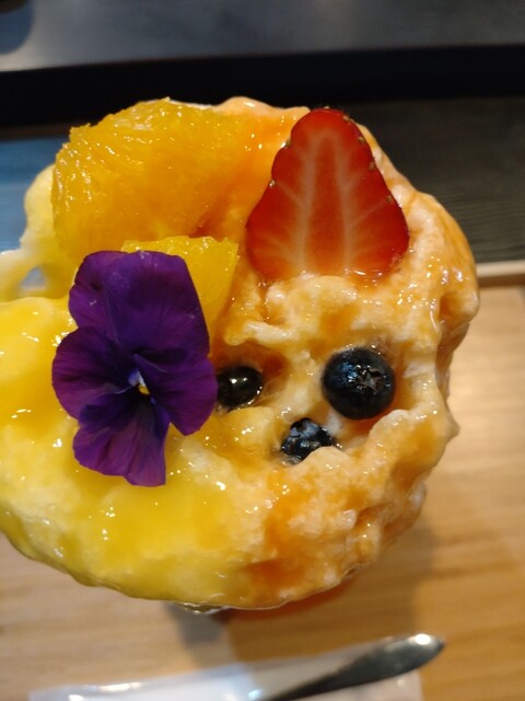 娘をつれて。りんごクリームチーズと、ピンクグレープフルーツヨーグルトをいただきました。