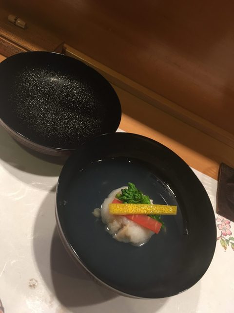 ばらちらしの後にお椀がでて、ついにこの時季ならではの天然のとらふぐの白子の登場です!