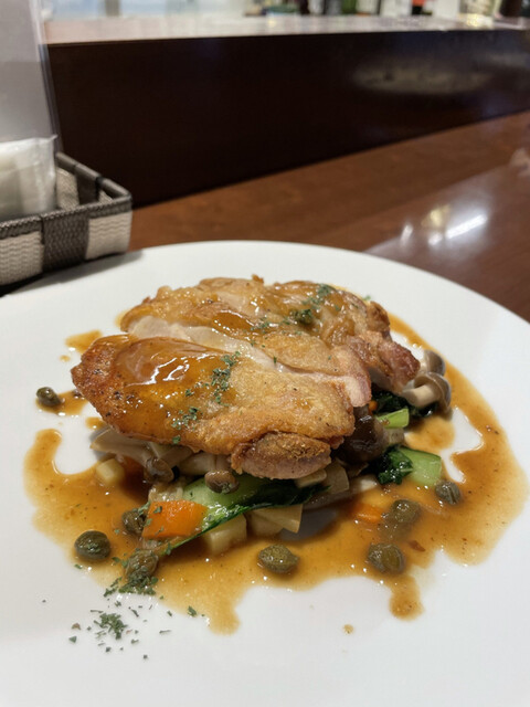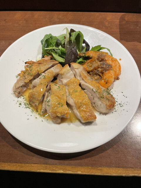 鶏モモのソテーとガーリックシュリンプ
