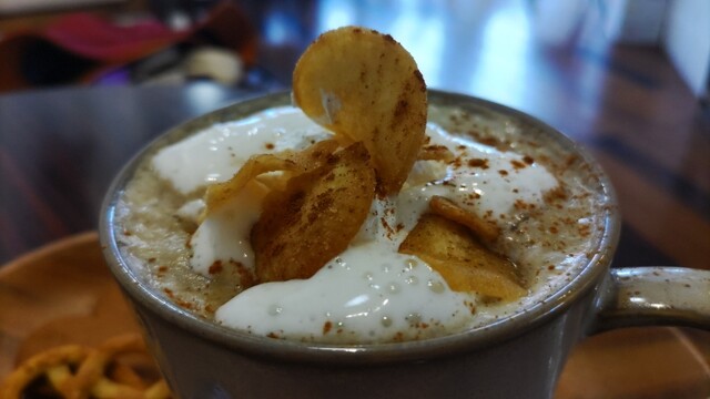 ~おいしくデトックス~栗と焼き芋のホットスムージー chestnut & sweetpotato hot smoothies―ほくほくの栗と焼き芋をブレンドしたクリーミーで 優しい味わいのスムージー。食物繊維やカリウム、 ビタミンB1が豊富なので冬の冷えからくる便秘に お悩みの方にもおすすめのお腹に嬉しい一杯です。