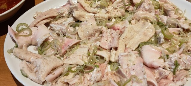 最初に運ばれてきた白モツ系の盛り合わせにはビックリ
