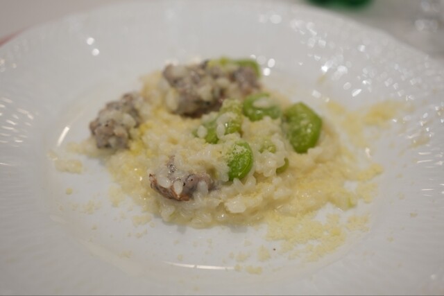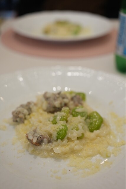 リゾットの味付けもしっかりとチーズの味がするものの濃すぎず、そら豆の甘みも相まって美味しくいただけました。