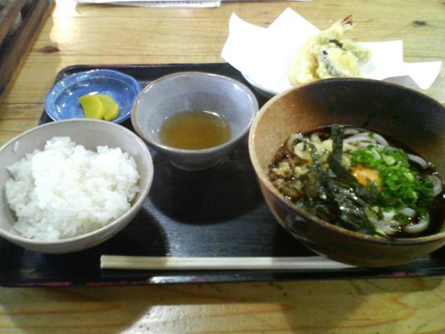 ここでは定番の冷たいころうどんをお願いしました。麺は細めですがこしがしっかりとしていて、甘めのつゆに、わさび、玉子を混ぜて食べるとめんのうまさが引き立ちました。
