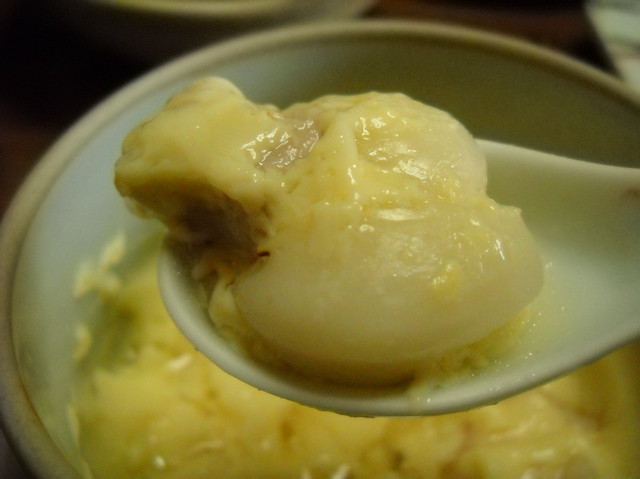 また茶わんむしは表面は鏡のようになめらかでスプーンを入れると、そこからだしがあふれ出してきました。一口含むととまるで、おすましを飲んでいるかのような感覚になりました。