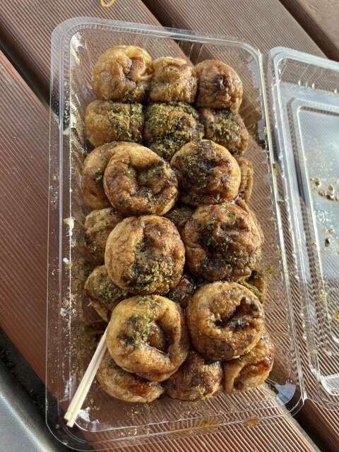 たこ焼き=大阪東大阪に仕事があり、大阪市地下鉄まで徒歩。お腹を空かせて、近くの公園で食べる。本当は店内でも、と思ったのだけど、やってないかな。ドリンクも買って、寒空の元、相方と食べる。安いだけあるけど、美味い。自分が近くに住んでたら、通う名店。娘さん?お父さんお母さんの接客もいい具合。