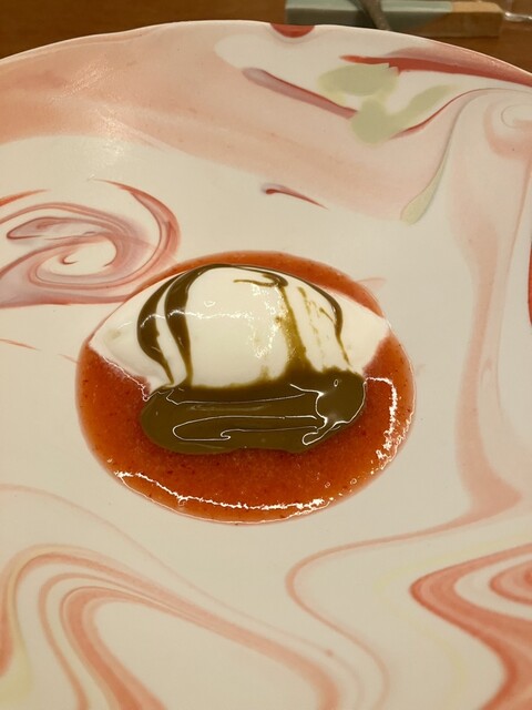 ・ジェラート阿澄苺ソースとピスタチオソースを添えて