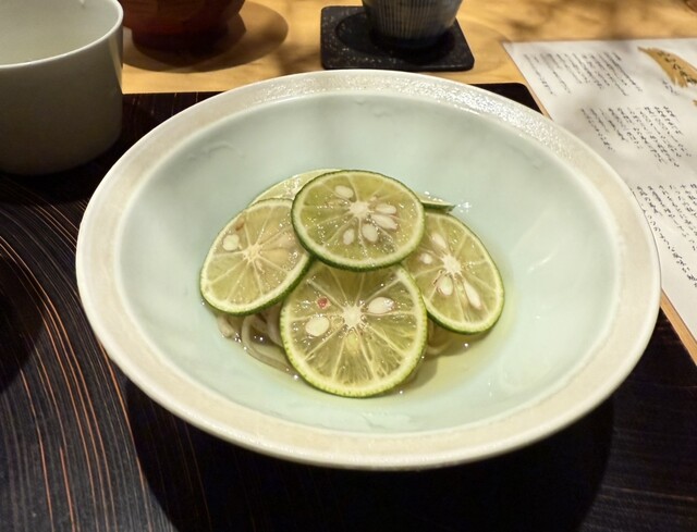 最後のすだちそばは、出汁の澄んだ香りとすだちの爽やかさが見事に調和し、ふっと抜ける香りまで心地よい余韻。