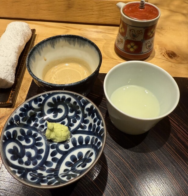 先付は香ばしいそばスープ。やさしいとろみとそばの香りが立ち上り、心がほぐれる一杯。