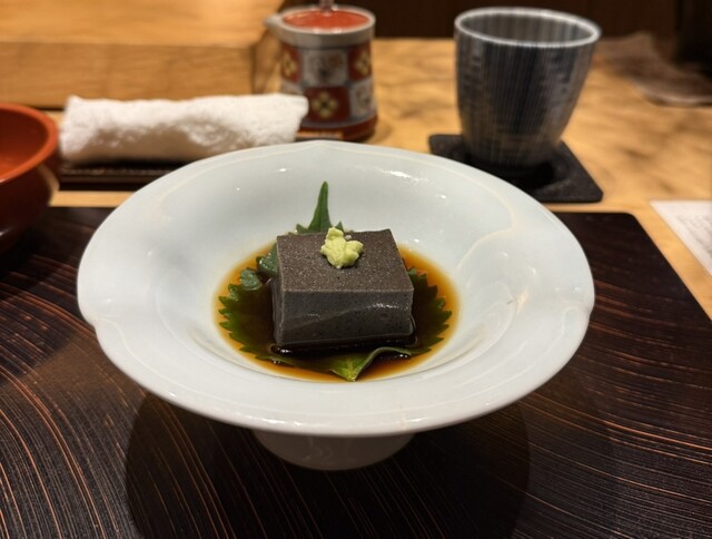 黒胡麻豆腐は濃厚でなめらか、香り高い胡麻の風味が広がります。