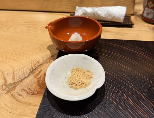 そばがきはふんわりとろりとした食感で、わさびの香りとともに旨味がふくらみます。大根おろしやきなこで味の変化も楽しい。