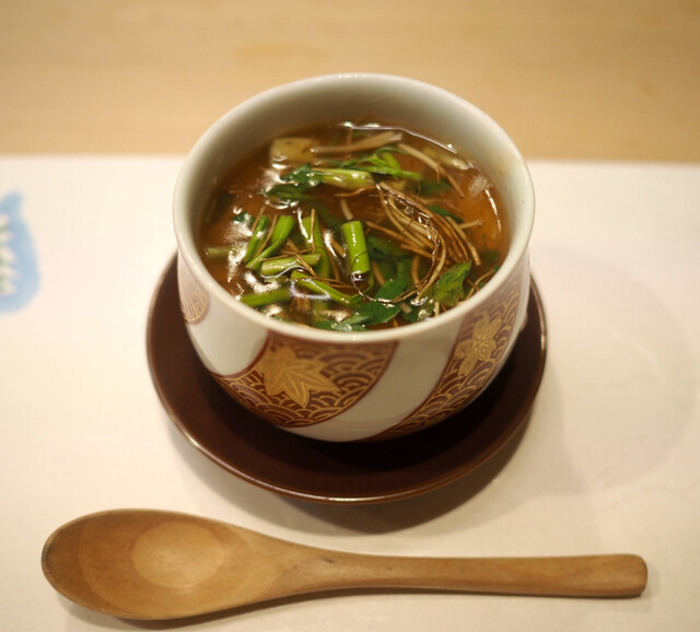 (・青柳 出汁(昆布森 雲丹 + 青柳)