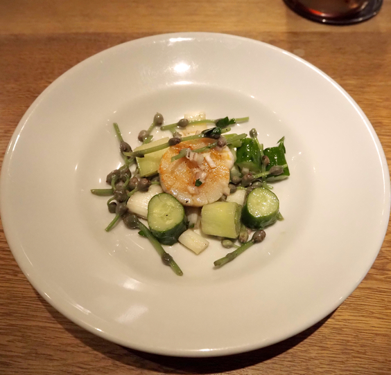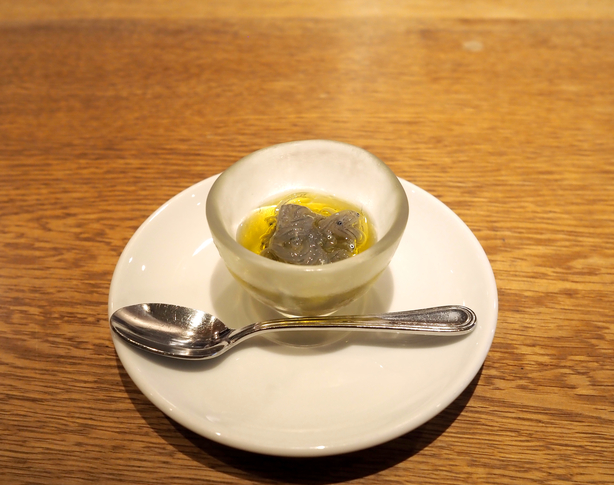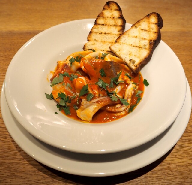 ・京都 白烏賊 + 宮城 帆立 + 明石 真鯛のトマト煮込み ガーリックトースト添え