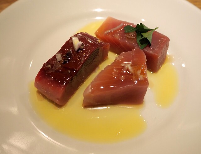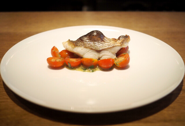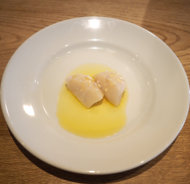 京都 白烏賊 + 宮城 帆立 + 明石 真鯛のトマト煮込み ガーリックトースト添え