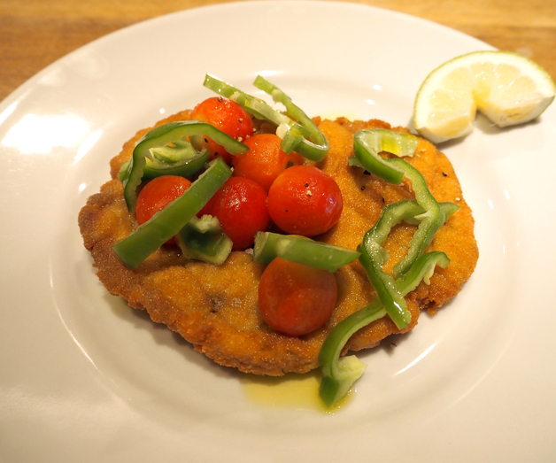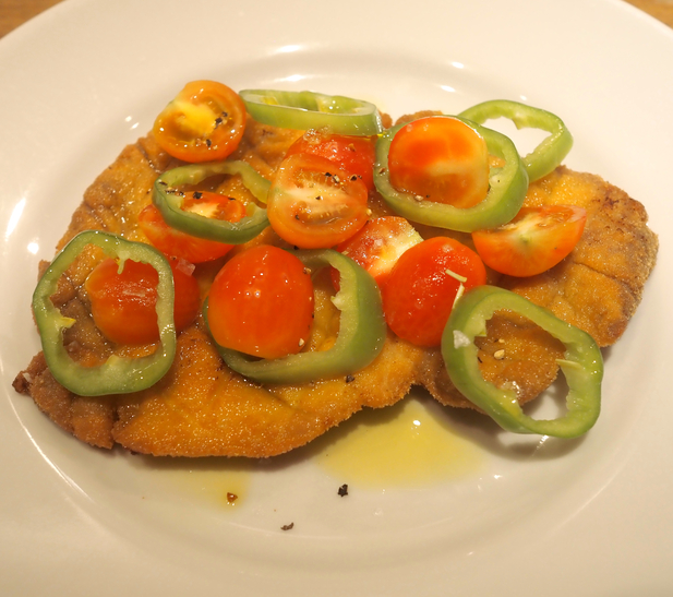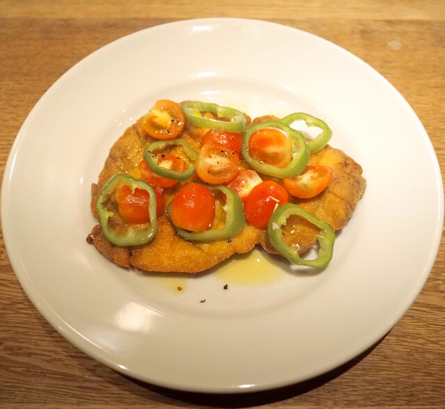 ・宮城 黒豚 ミラノ風カツレツ + トマト + ピーマン