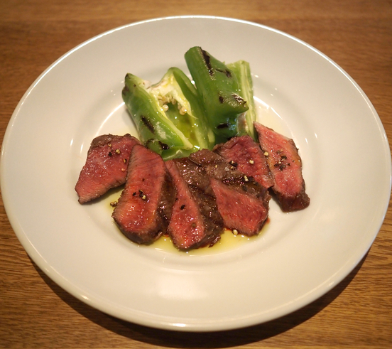・グラスフェッドビーフ リブロース ミラノ風カツレツ + 北海道 トマト + 栃木 ささげ